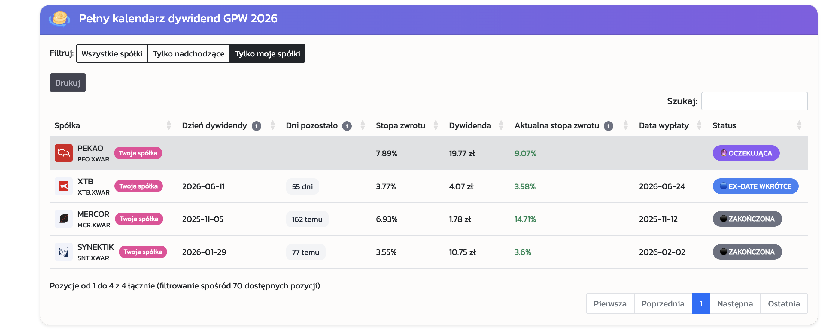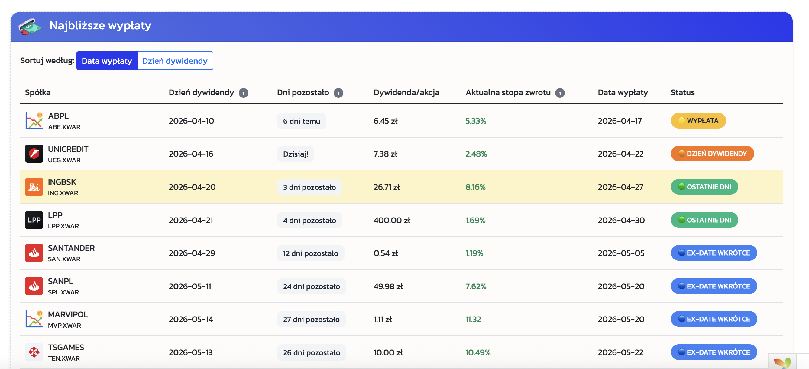 👉 nadchodzące wypłaty dywidend